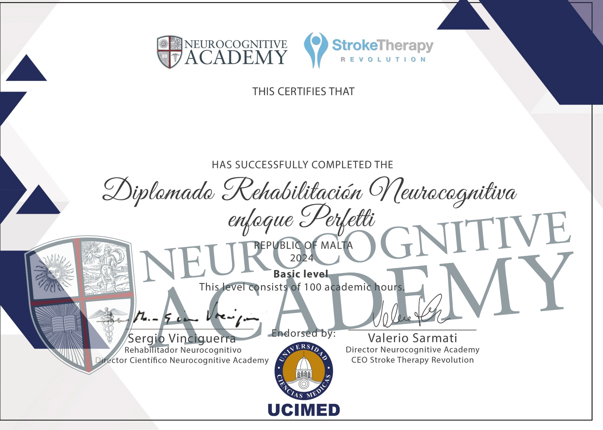 Matrícula mensual 30 USD: Diplomado rehabilitación neurocognitiva enfoque Perfetti – Bolivia